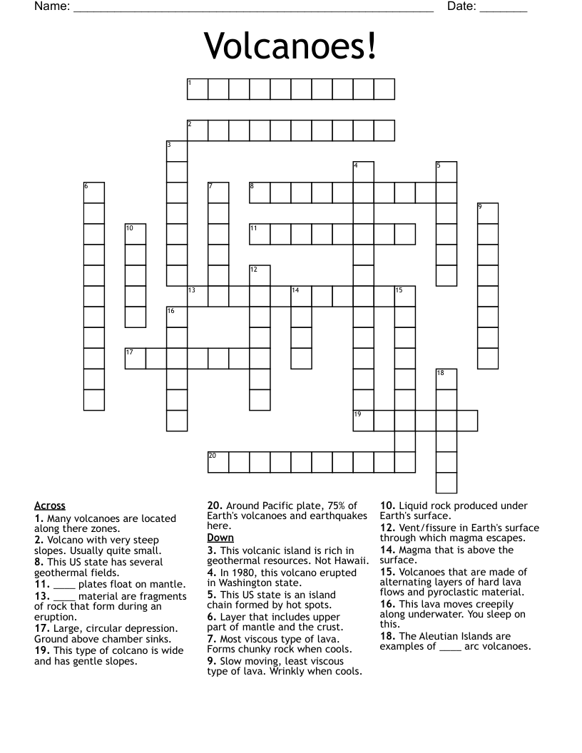 Volcanoes Crossword WordMint