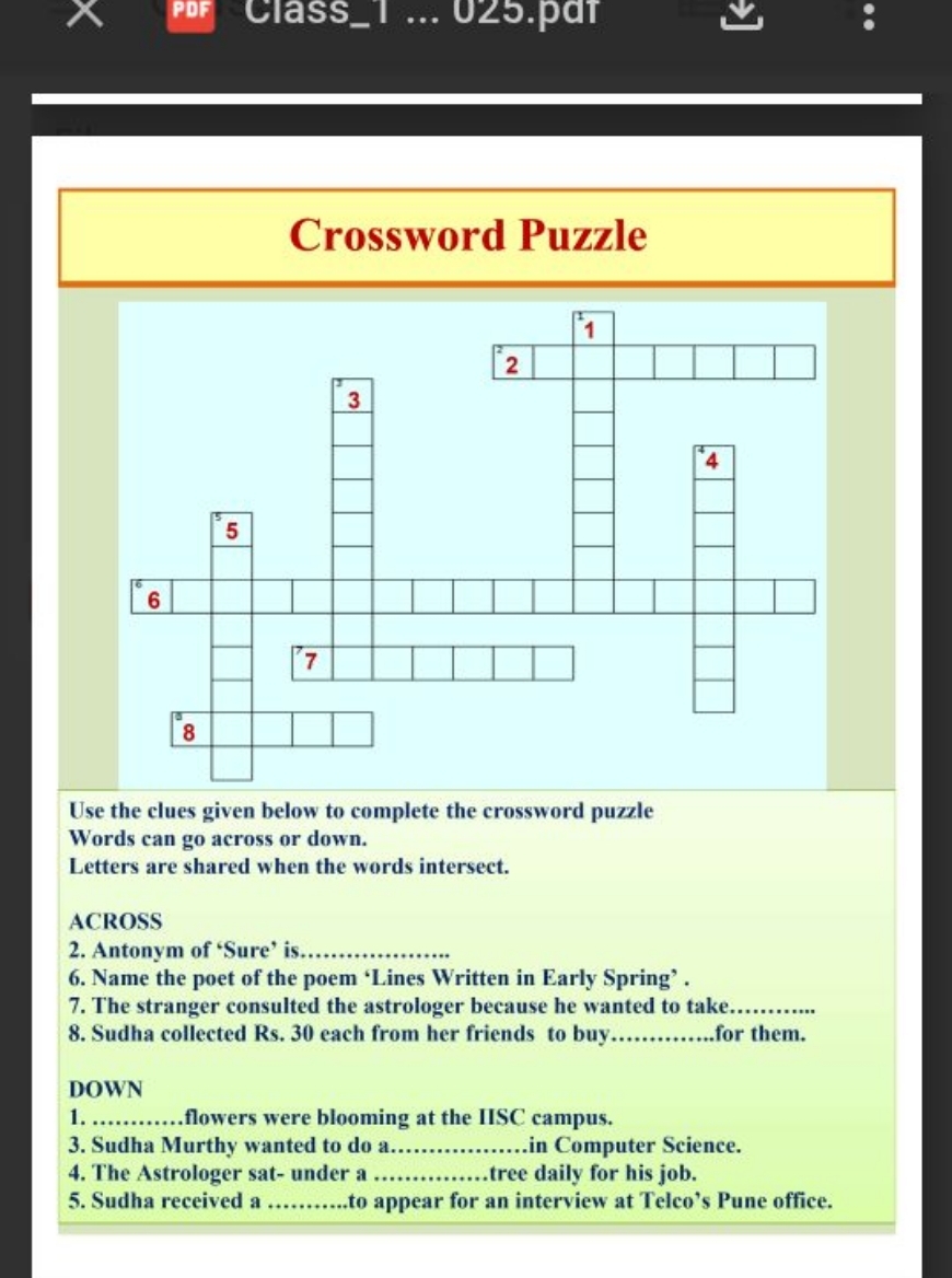 Use The Clues Given Below To Complete The Crossword Puzzle Words Can Go