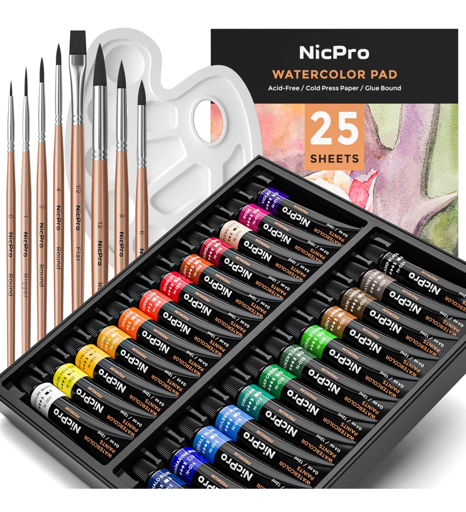 Nicpro Watercolor Paint Kit 24 Tube Water Color Paints 8 Brushes 25 Art Papers Palette Color Wheel Professional Painting Supplies Set For Artists Students Kids Adults Buy