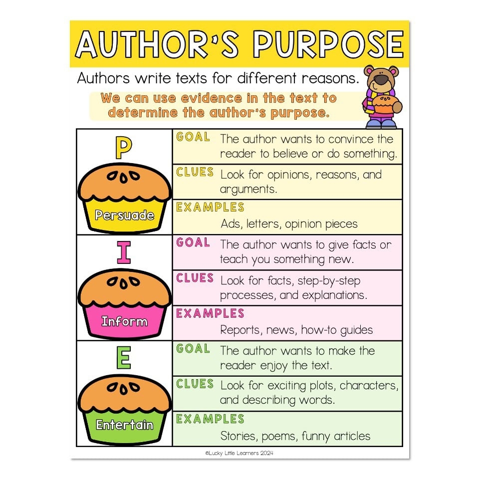 Author s Purpose Anchor Chart PIE Lucky Little Learners