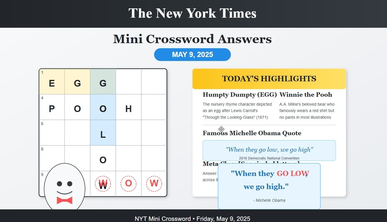 Humpty Dumpty To Michelle Obama NYT Mini Crssword Answers May 9 2025