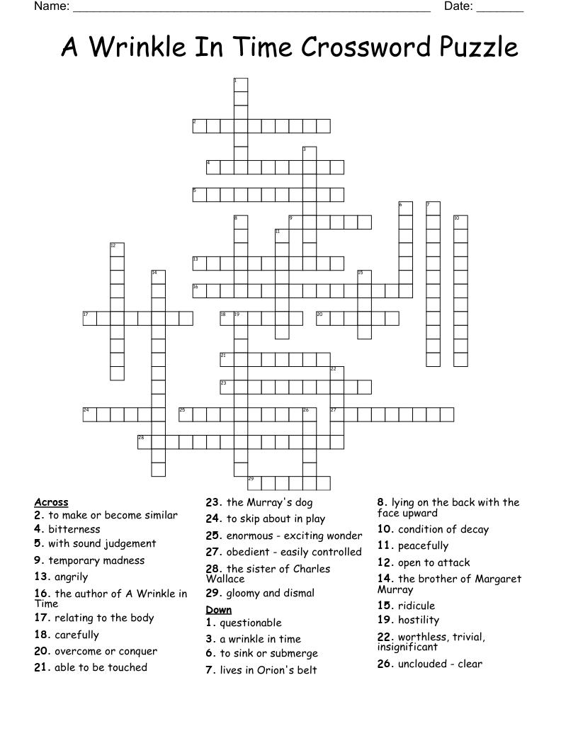 A Wrinkle In Time Crossword Puzzle WordMint