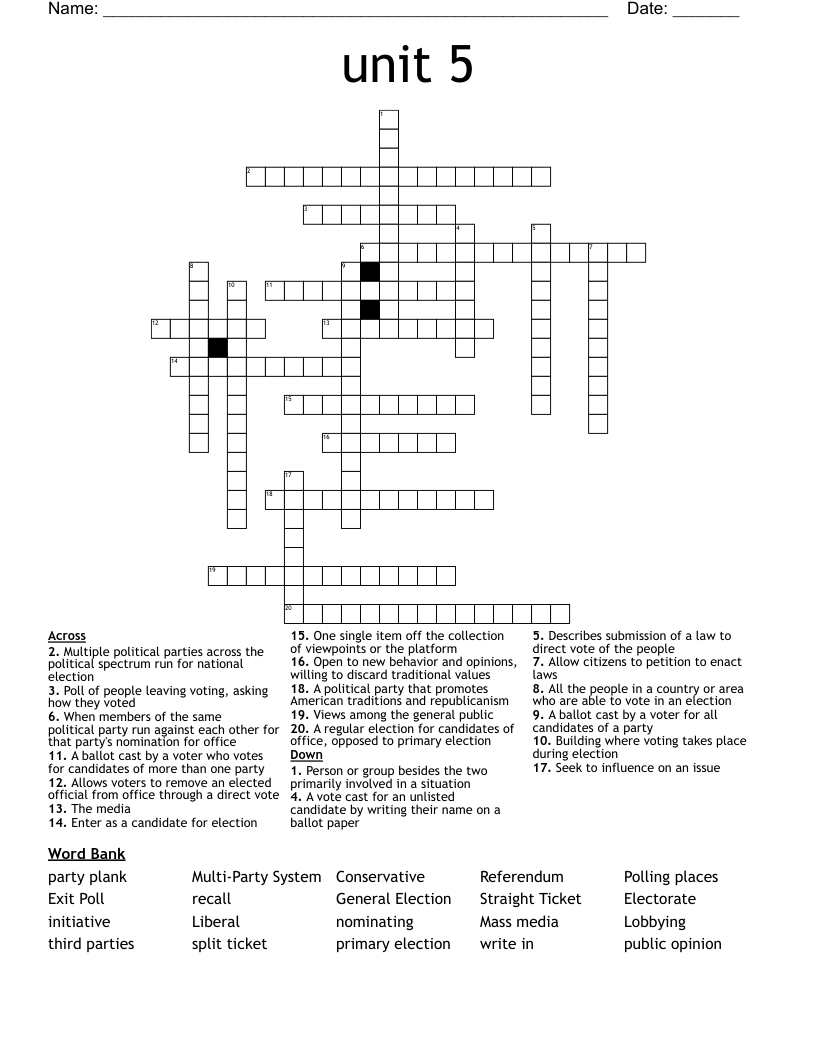 Unit 5 Crossword WordMint