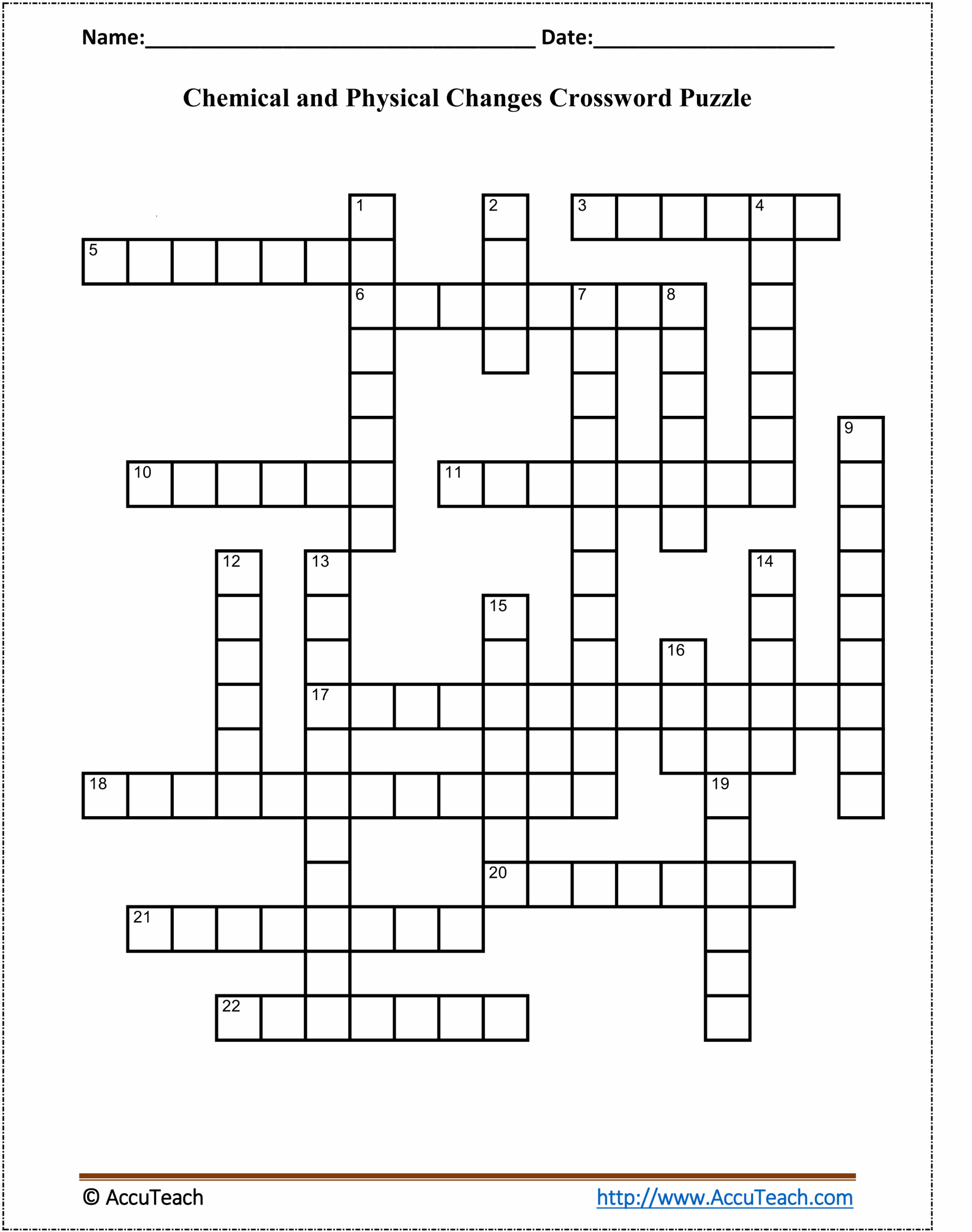 Chemical And Physical Changes Crossword Puzzle AccuTeach