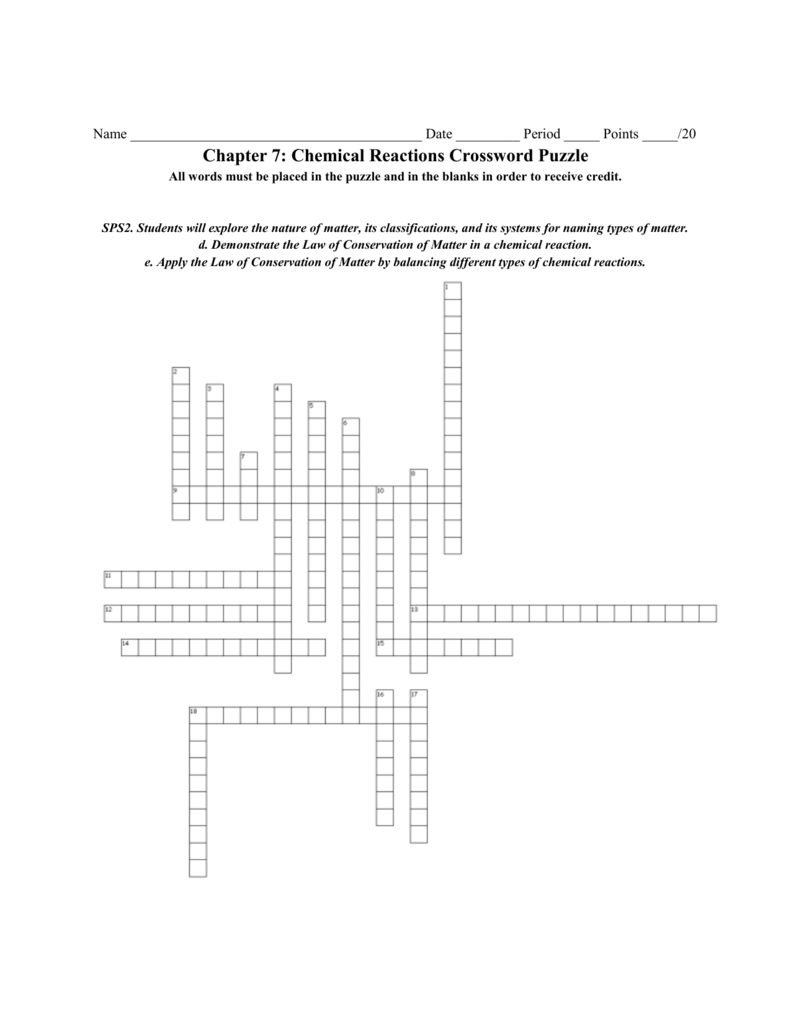 Chemical Formulas And Chemical Reactions Crossword WordMint
