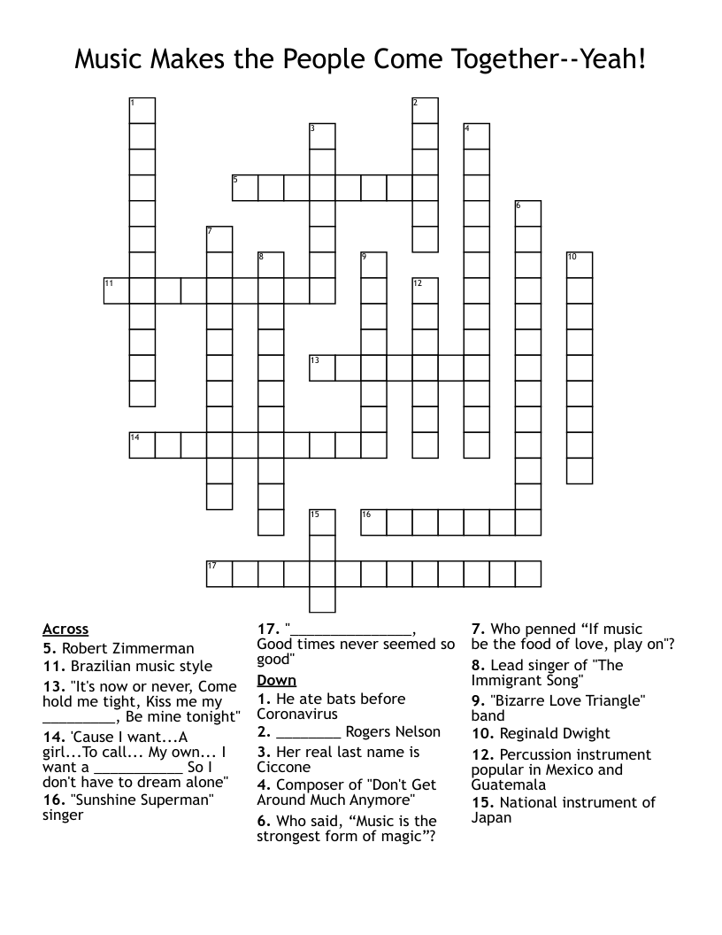 Music Makes The People Come Together Yeah Crossword WordMint