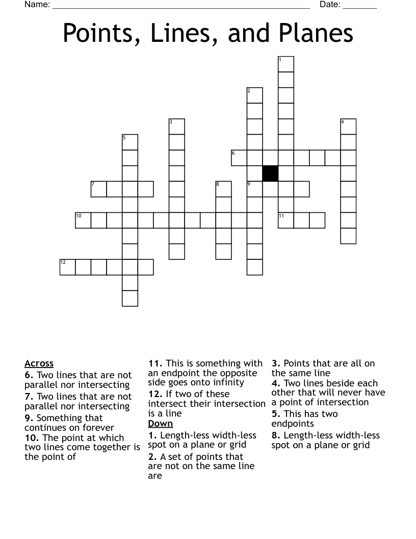 Points Lines And Planes Crossword WordMint