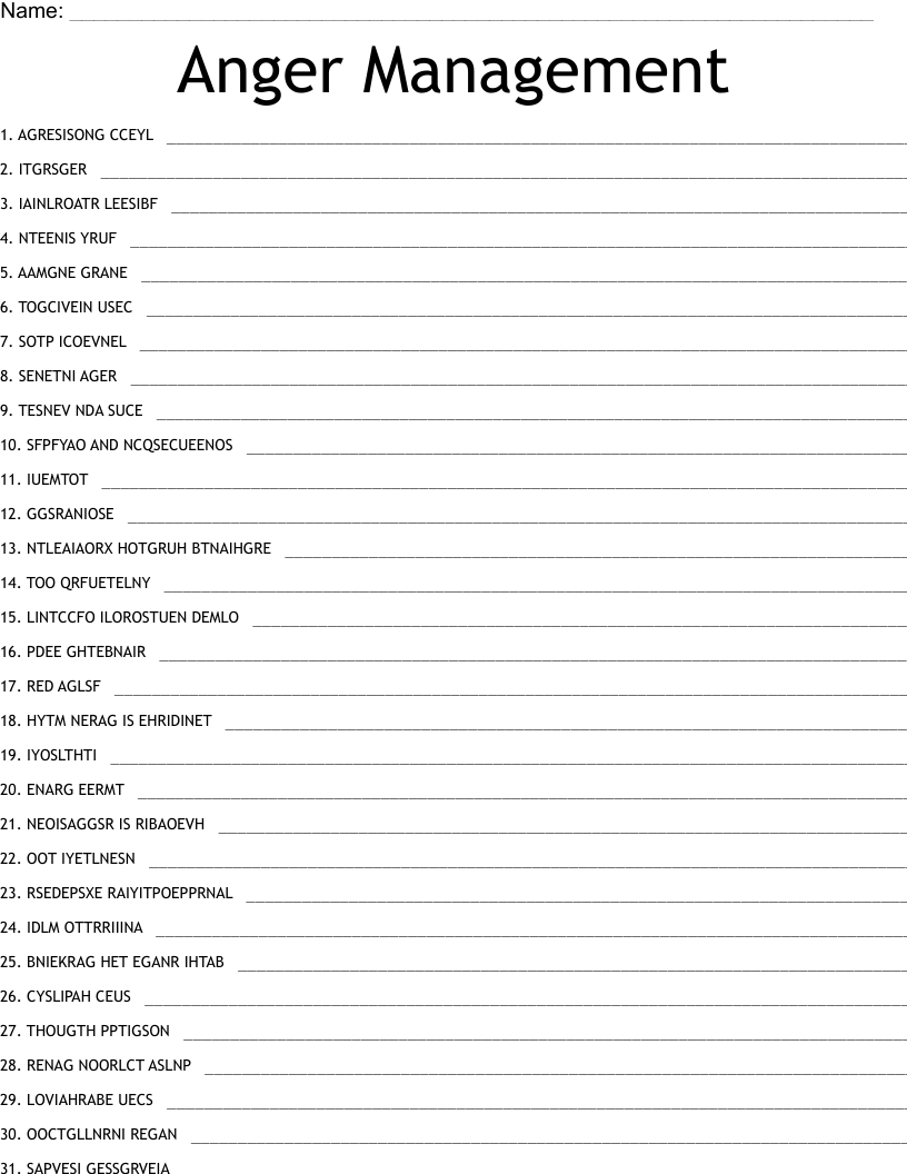 Anger Management Crossword WordMint
