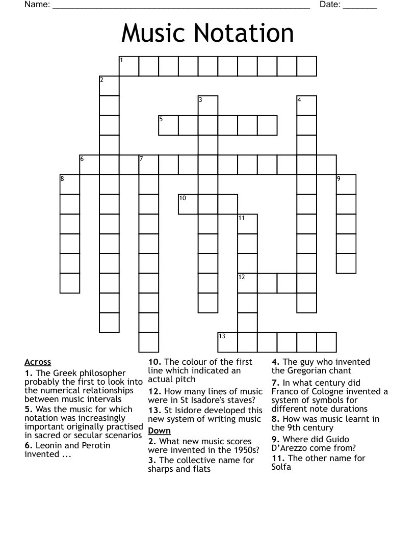 Music Notation Crossword WordMint