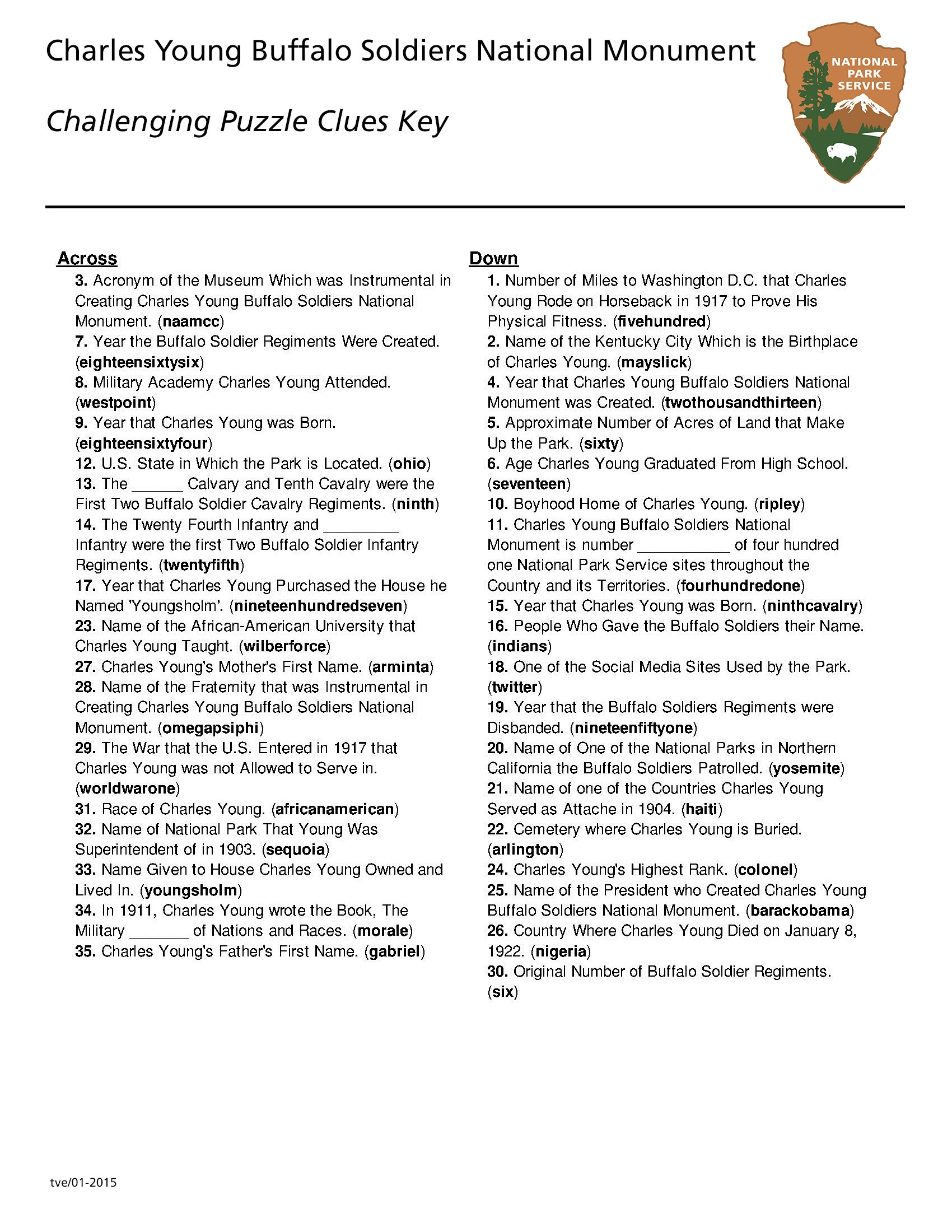 Crossword Puzzle Answer Keys Charles Young Buffalo Soldiers National Monument U S National Park Service