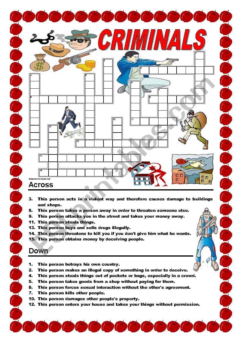 Criminals Crossword ESL Worksheet By Ildibildi