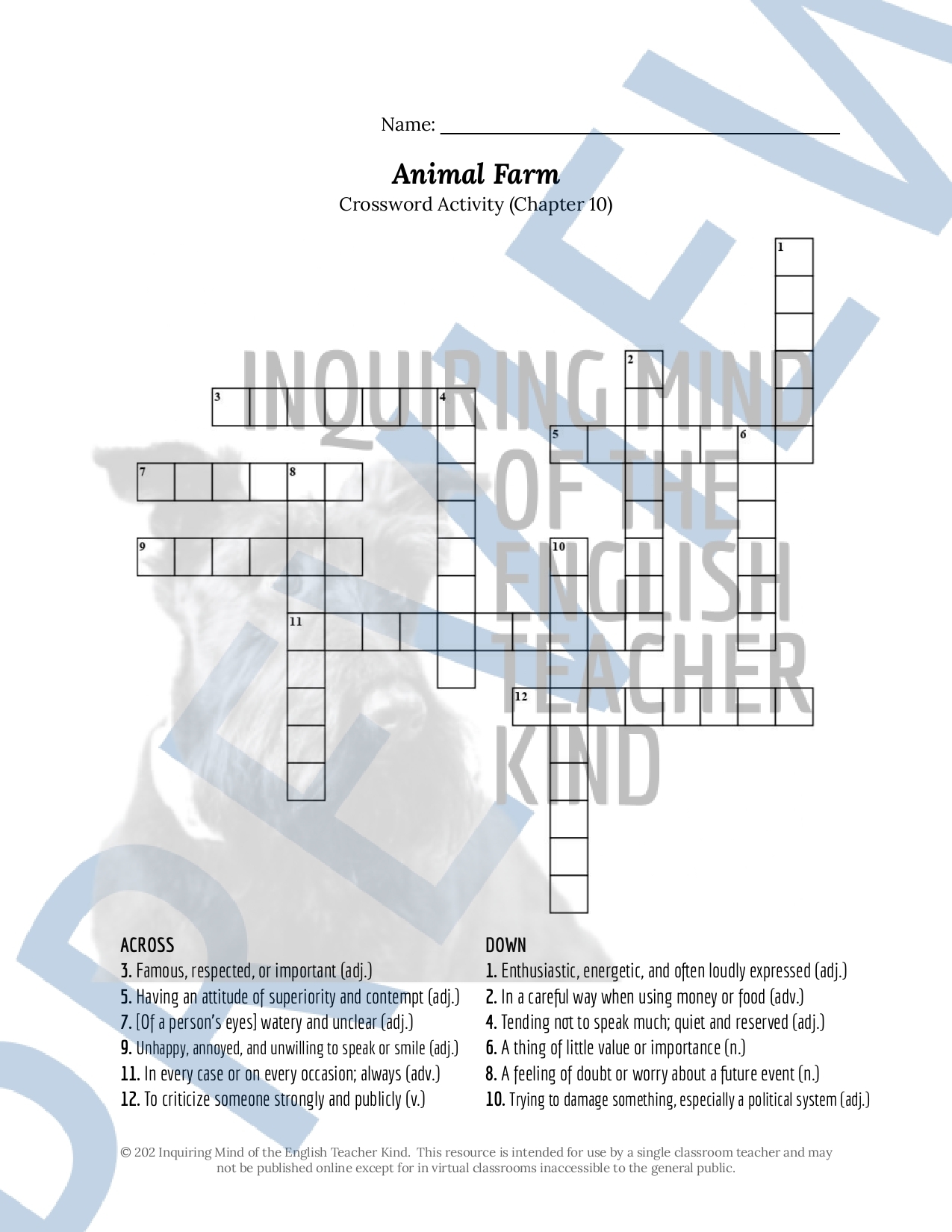 Animal Farm Chapter 10 Vocabulary Games Crossword Puzzle Word Search And More Made By Teachers