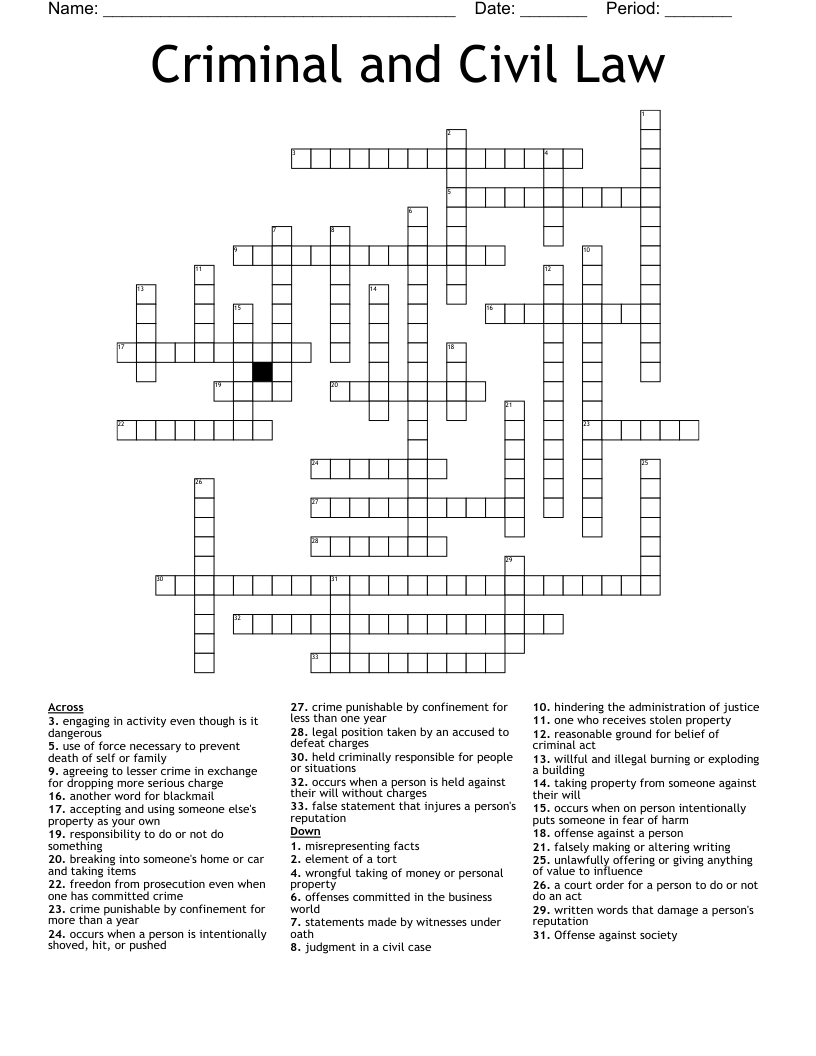 Criminal And Civil Law Crossword WordMint