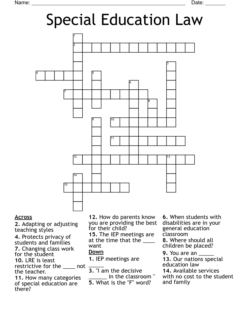 Special Education Law Crossword WordMint