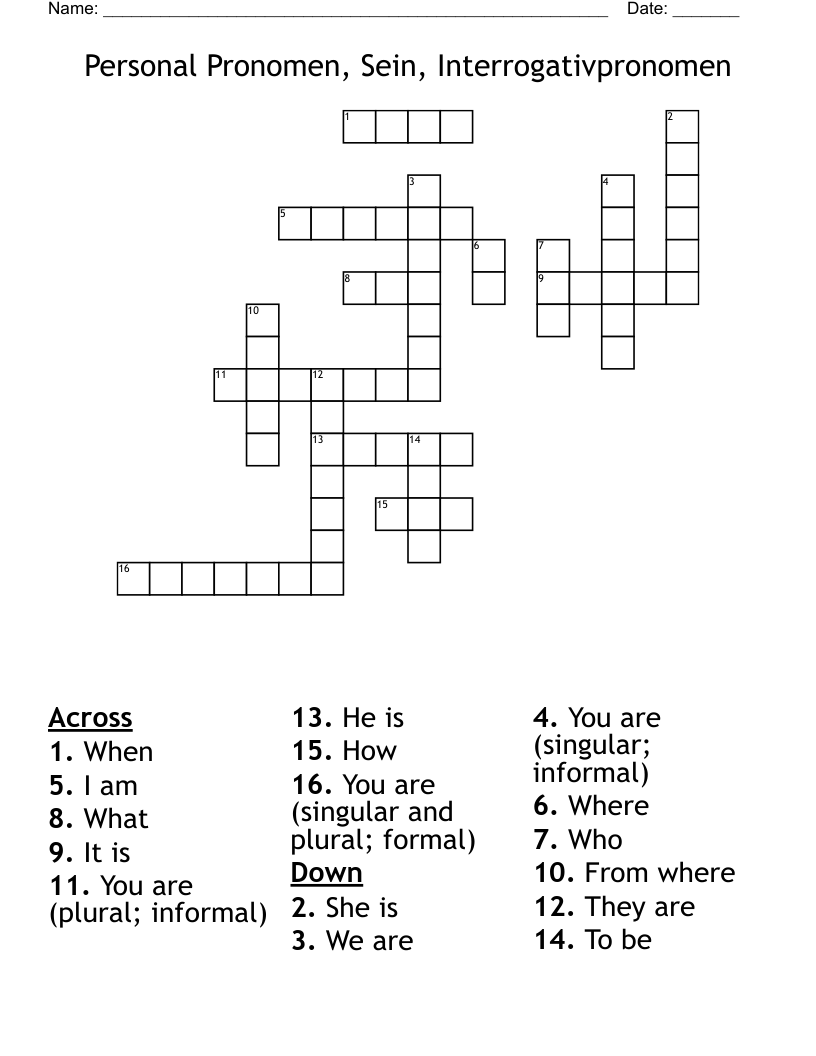 Personal Pronomen Sein Interrogativpronomen Crossword WordMint