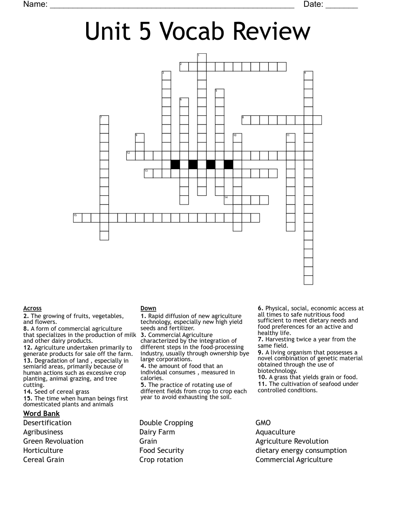 grains unit 5 crossword puzzle answer key