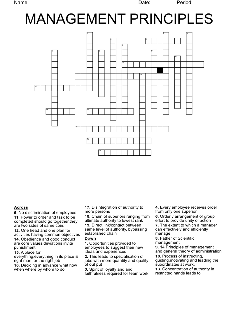 MANAGEMENT PRINCIPLES Crossword WordMint