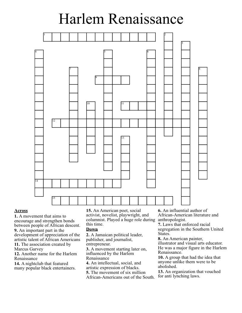 Harlem Renaissance Crossword WordMint