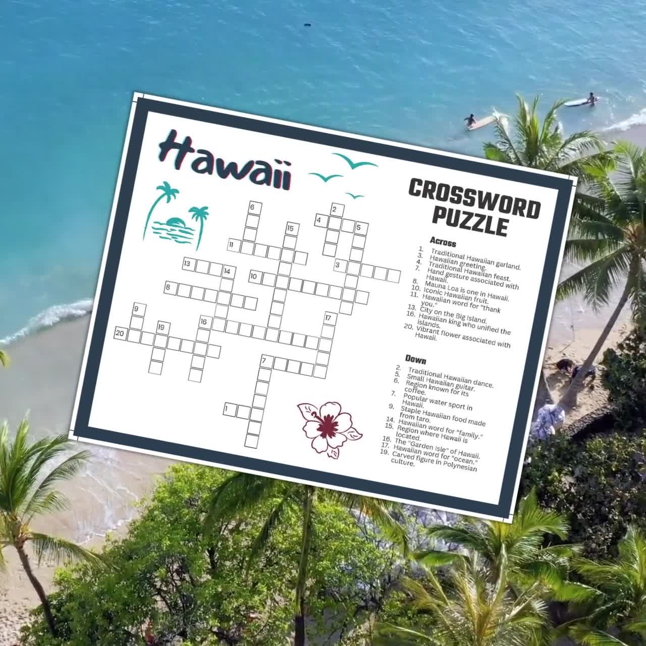 Hawaii Crossword Puzzle Printable Game Fun Travel Theme Birthday Activity Summer Aloha Beach Luau Party Hawaiian Gathering Word Game PDF Etsy