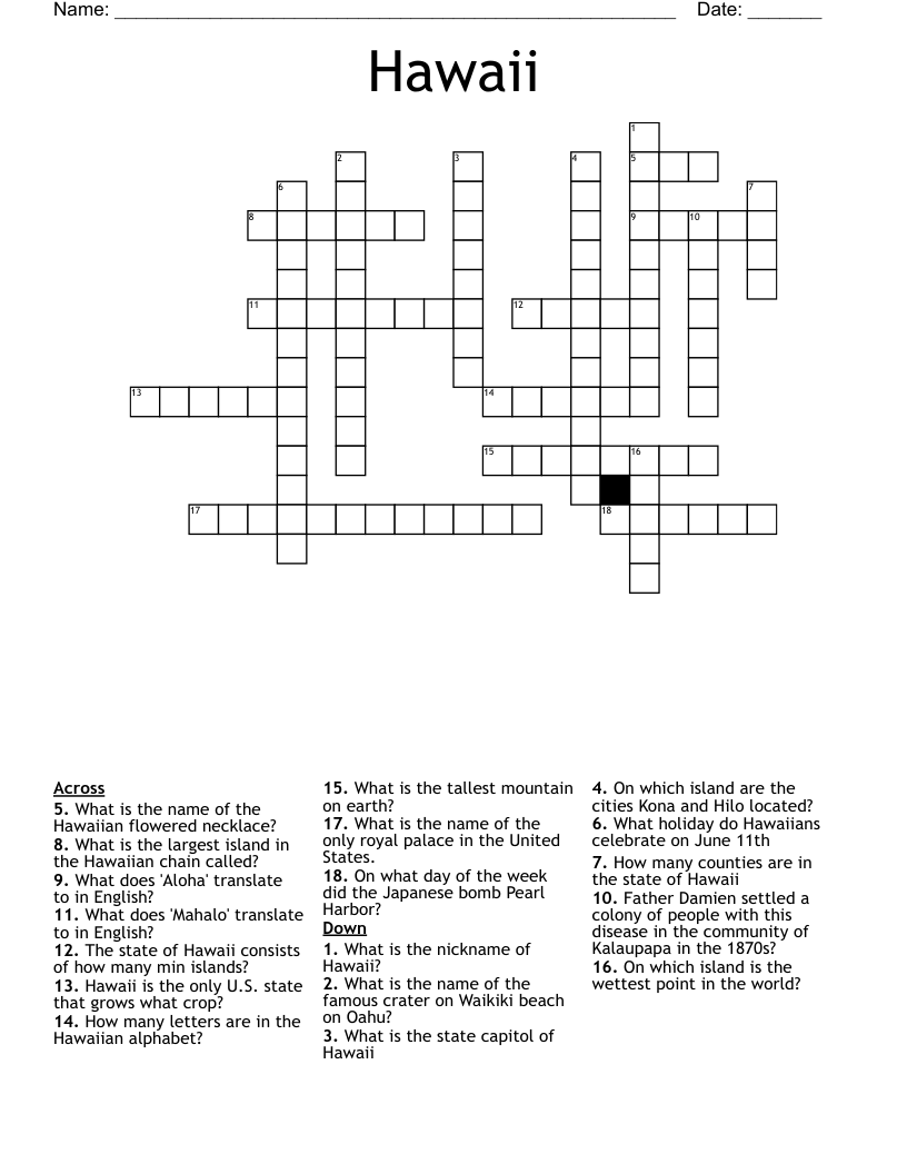 Hawaii Crossword Puzzle Templates At Allbusinesstemplates
