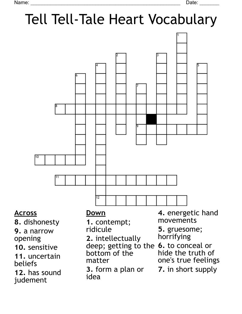 Tell Tell Tale Heart Vocabulary Crossword WordMint