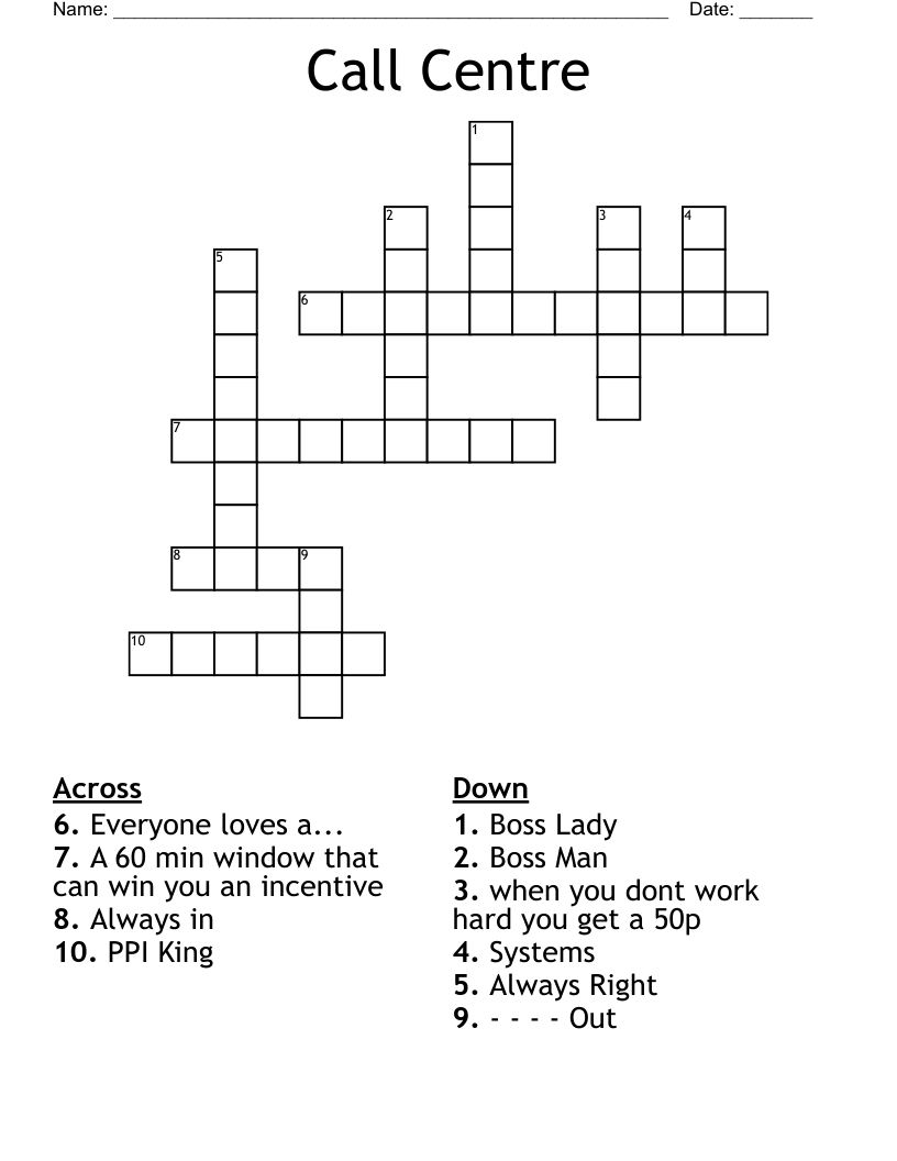 Call Centre Crossword WordMint