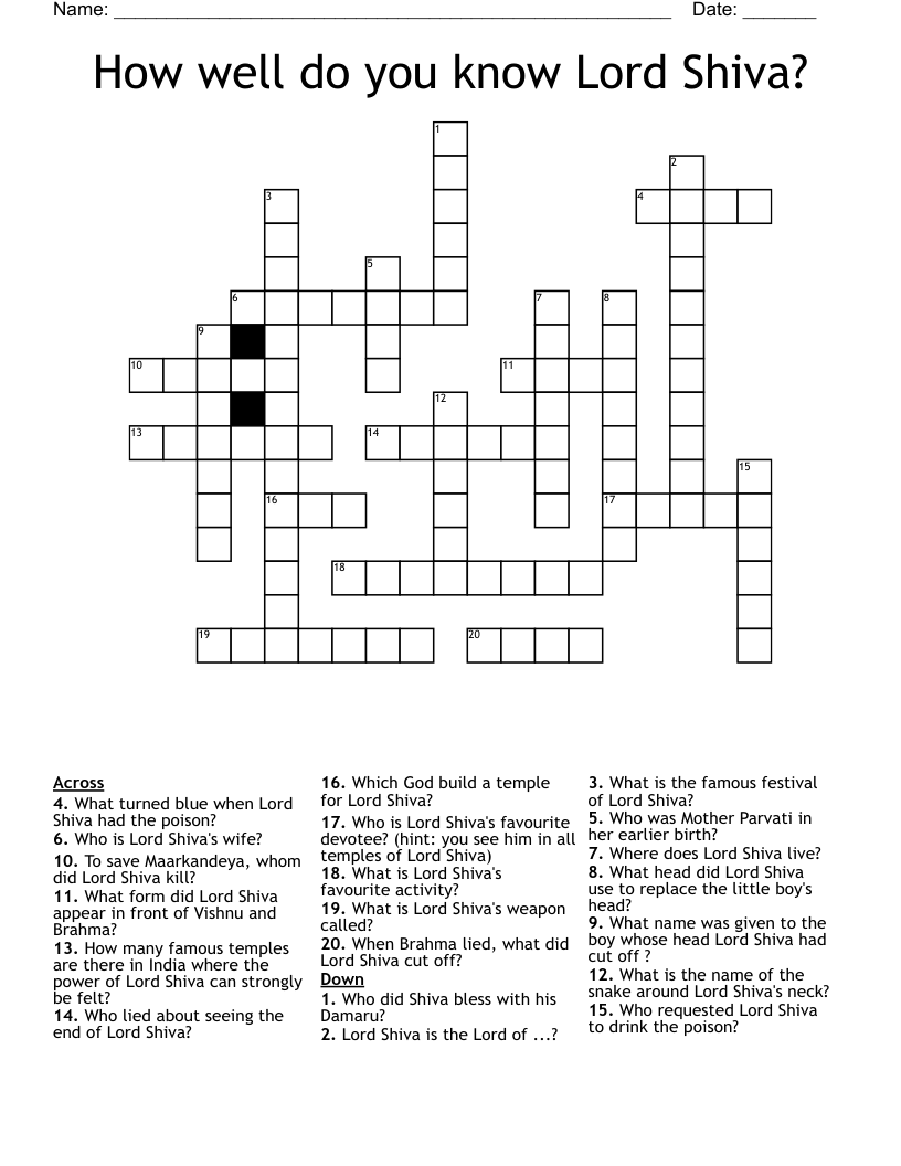 Enjoying a incarnation of shiva crossword offers relaxing yet stimulating mental exercise. Perfect for enhancing pattern recognition and word recall. With a quick-print format, they fit neatly into any routine or break.