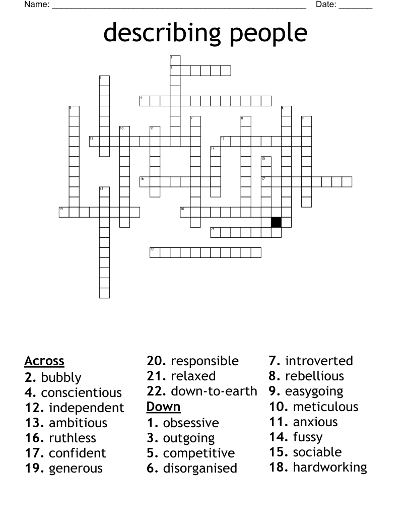 Describing People Crossword WordMint