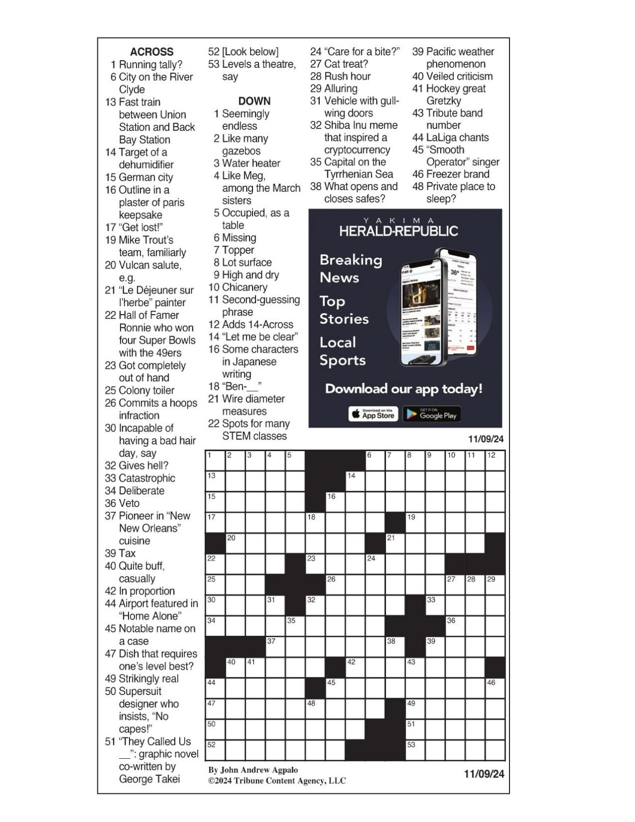 Los Angeles Times Sunday Crossword Puzzle Tribune Content Agency