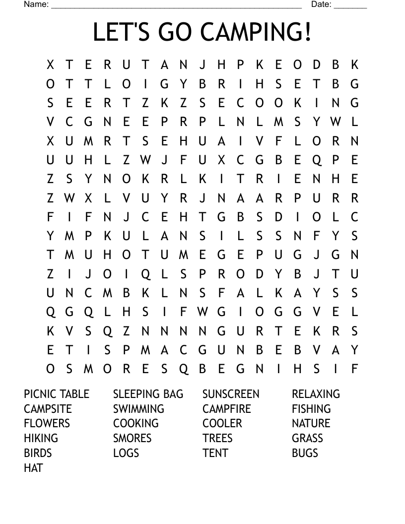 LET S GO CAMPING Word Search WordMint