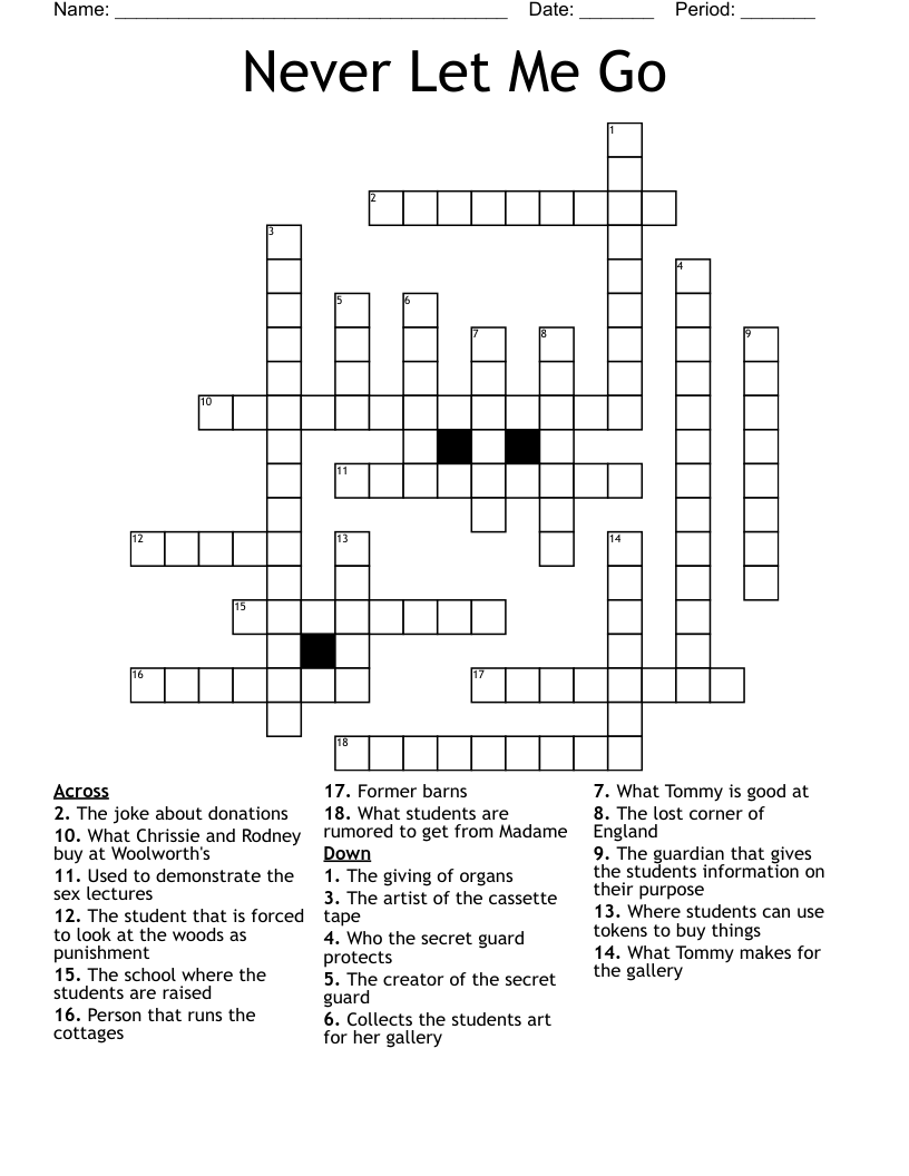 Never Let Me Go Crossword WordMint
