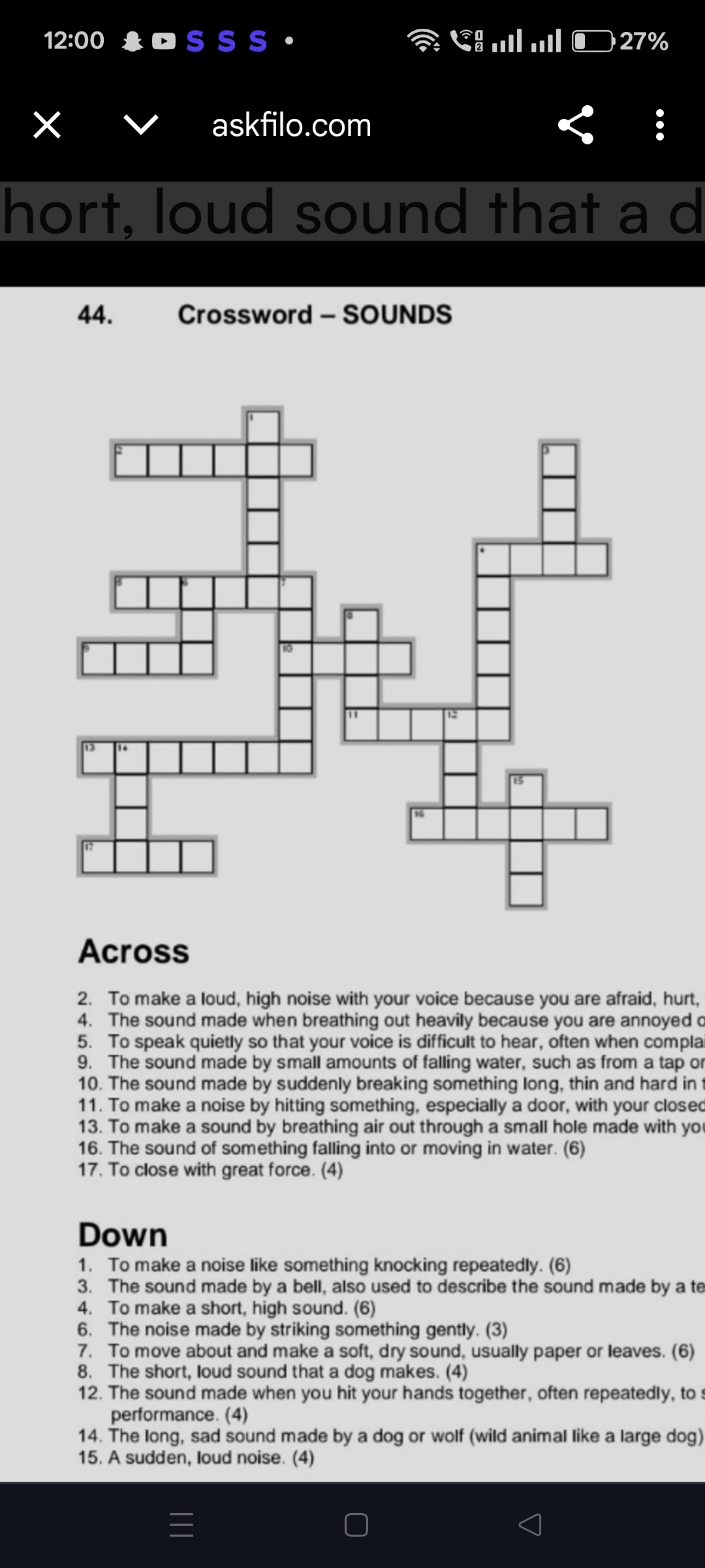 12 00 OSSS 27 Askfilo Hort Loud Sound That A D Crosswor