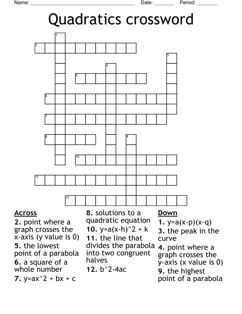 Quadratics Crossword WordMint