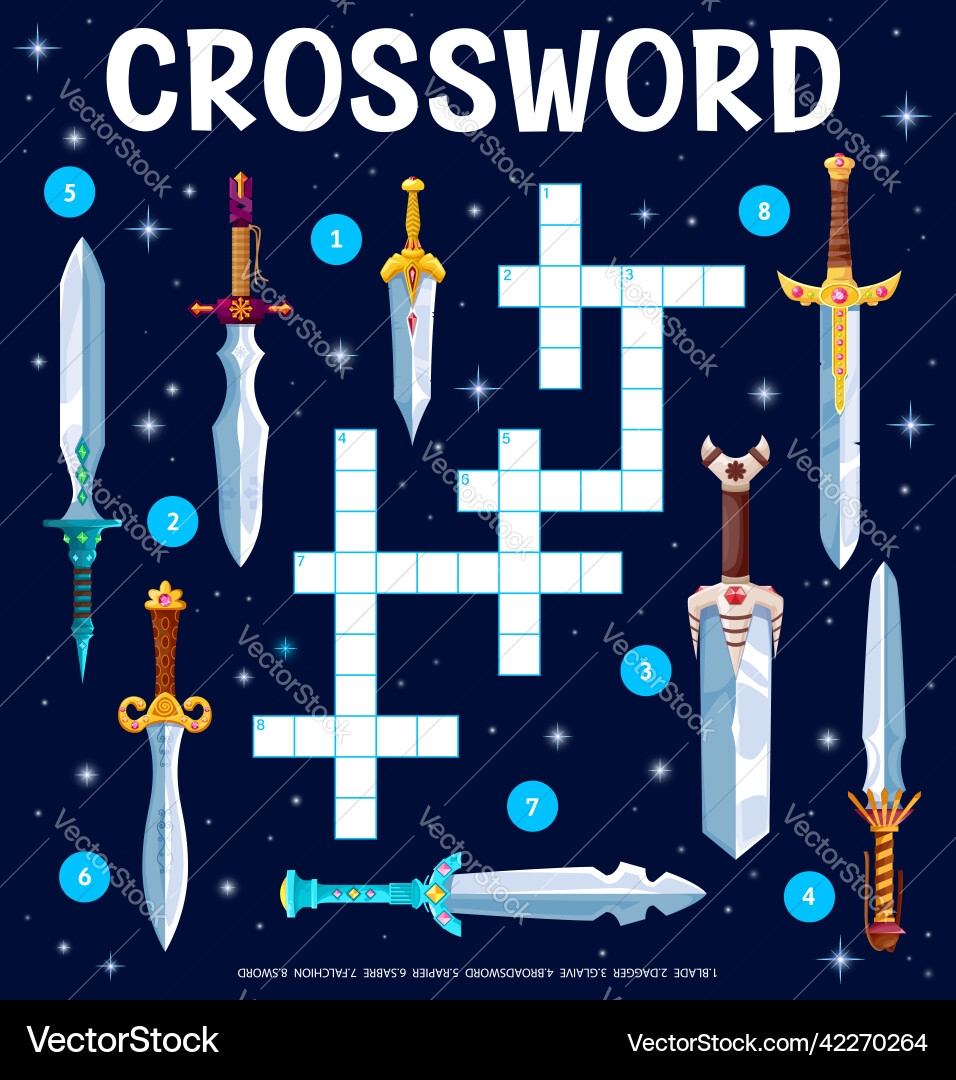 Fantasy Magic Swords Blades Crossword Puzzle Vector Image