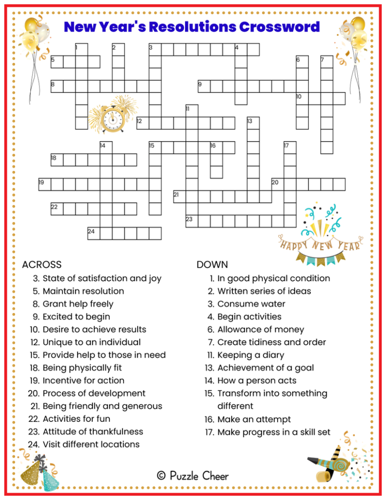 New Year s Resolutions Crossword Puzzle Puzzle Cheer