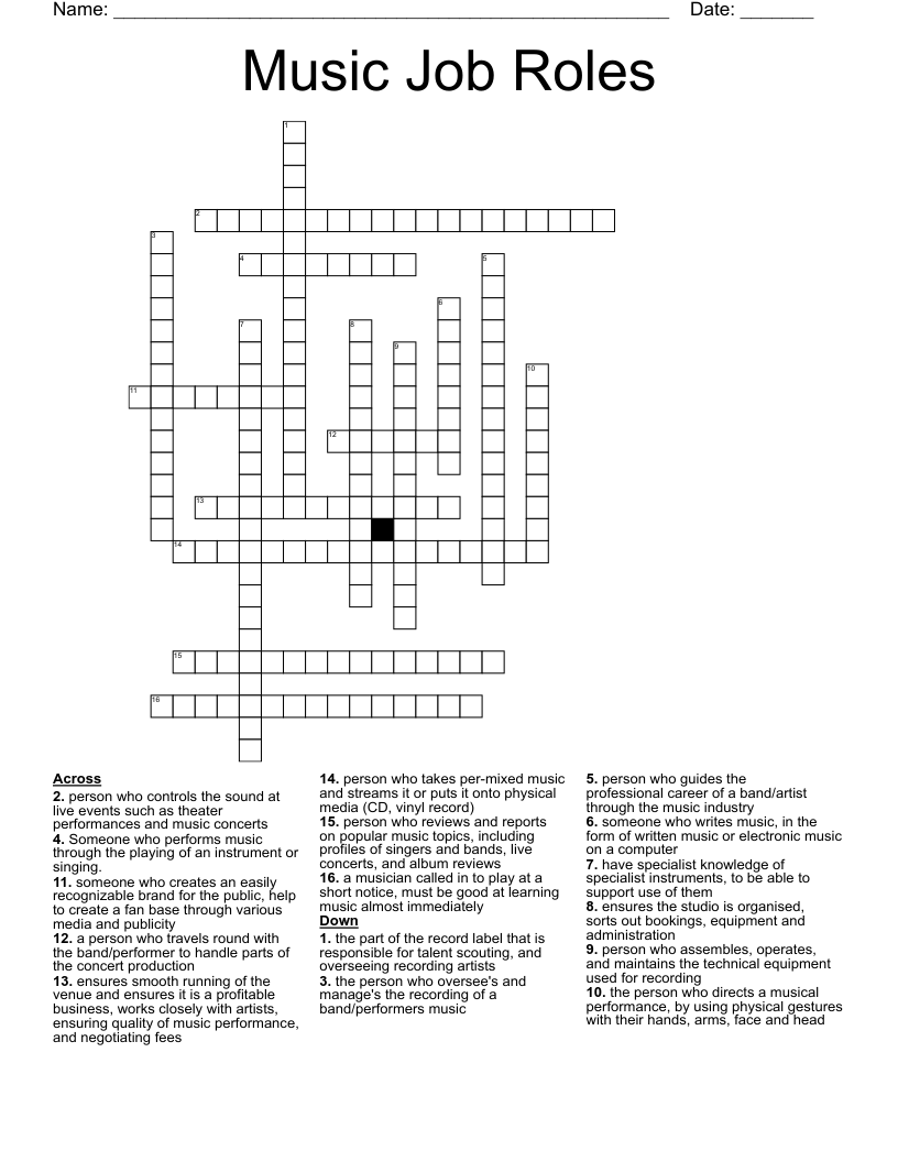 Music Job Roles Crossword WordMint