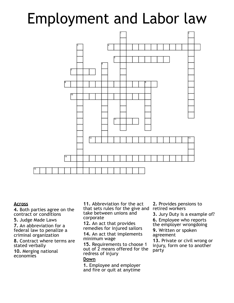 Employment And Labor Law Crossword WordMint