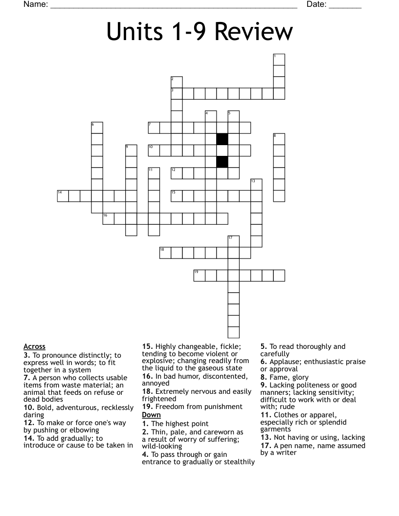 Units 1 9 Review Crossword WordMint