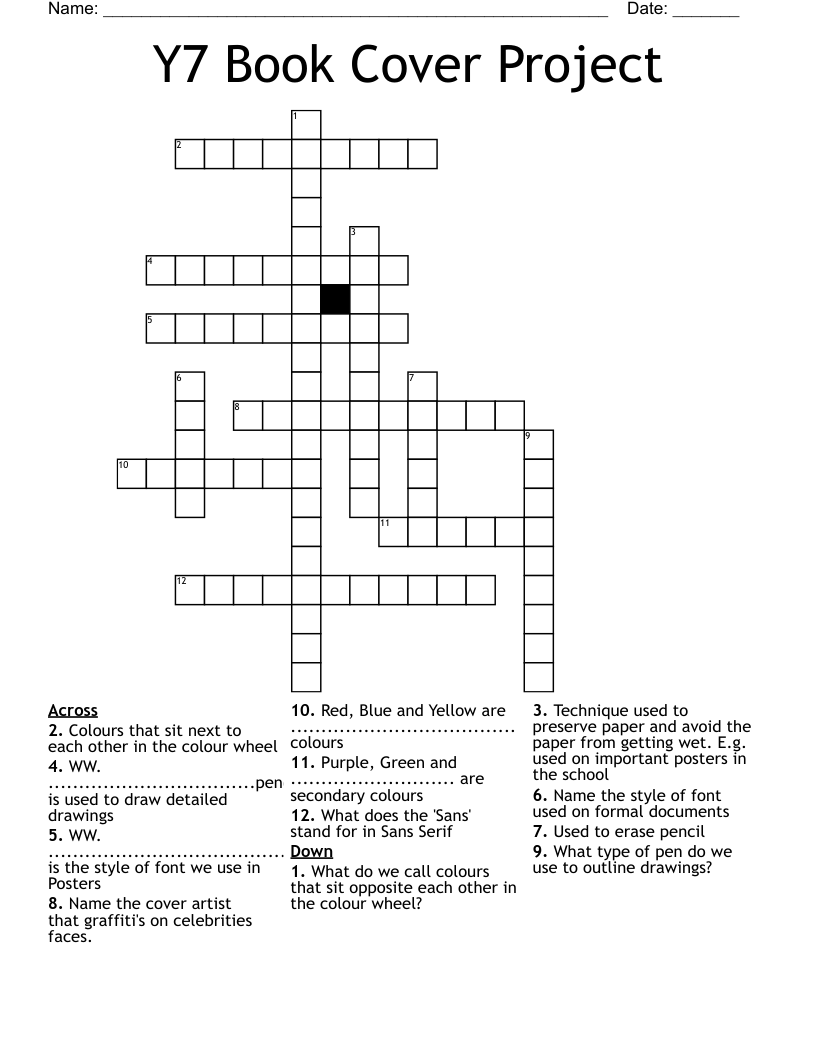 Y7 Book Cover Project Crossword WordMint
