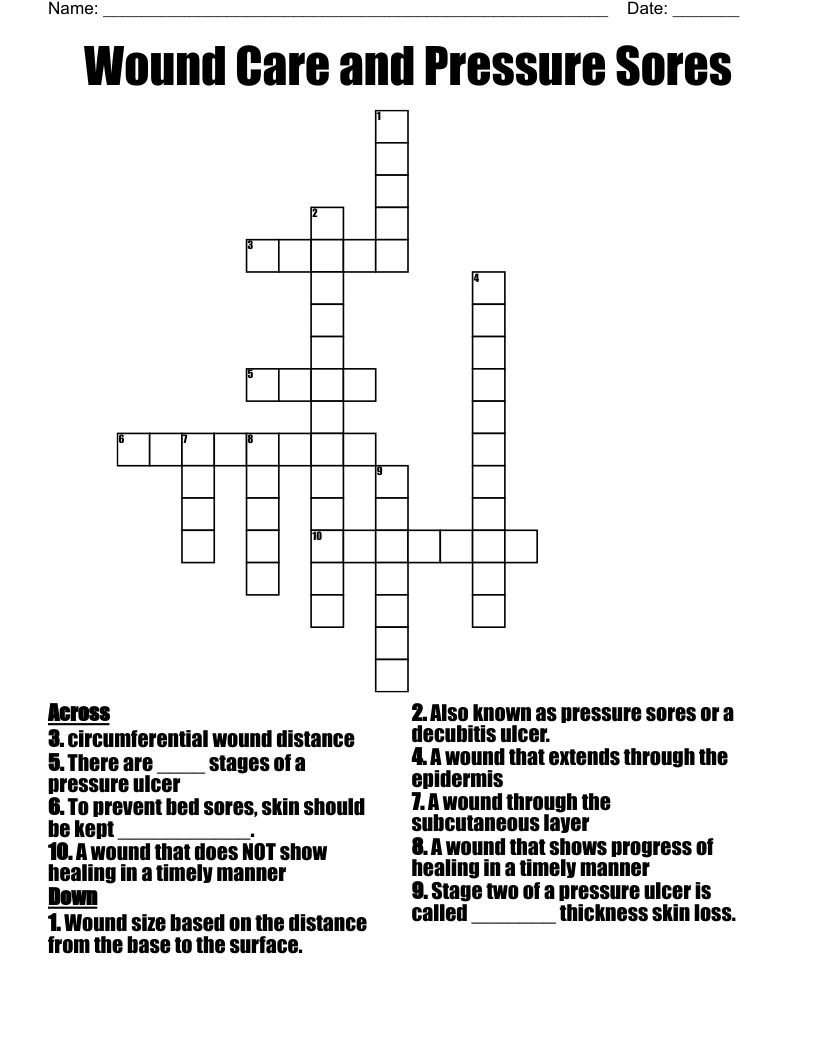 Wound Care And Pressure Sores Crossword WordMint