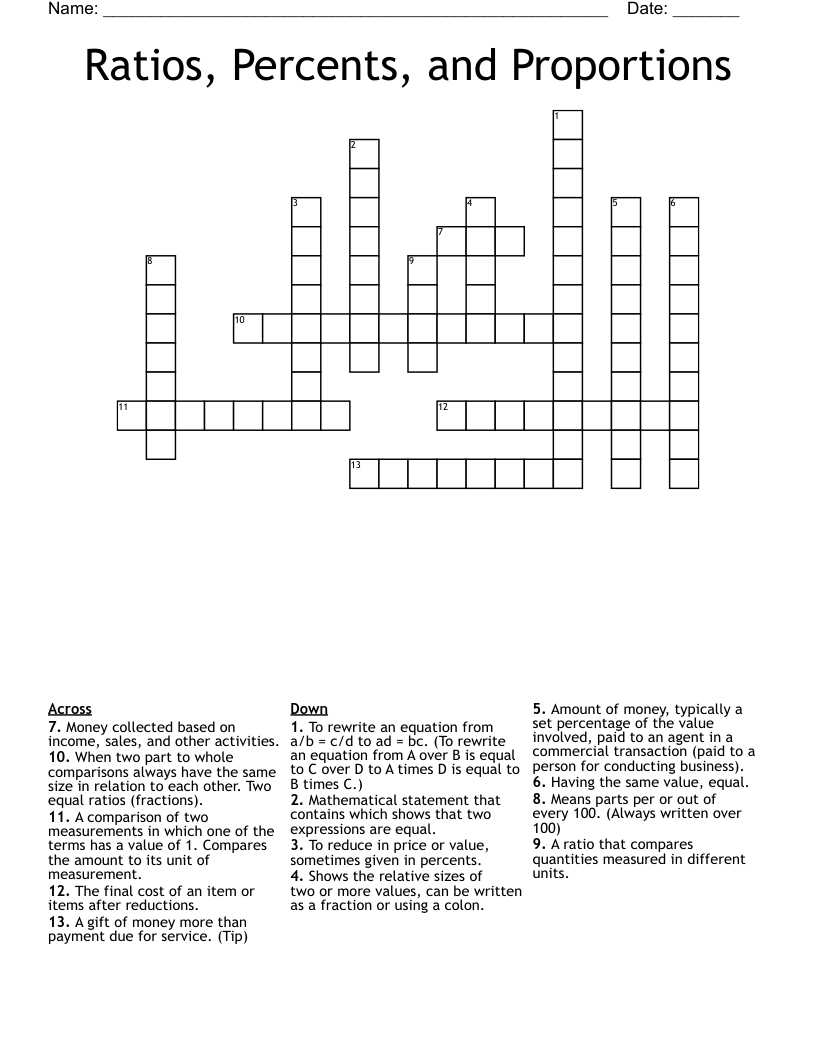 Ratios Percents And Proportions Crossword WordMint