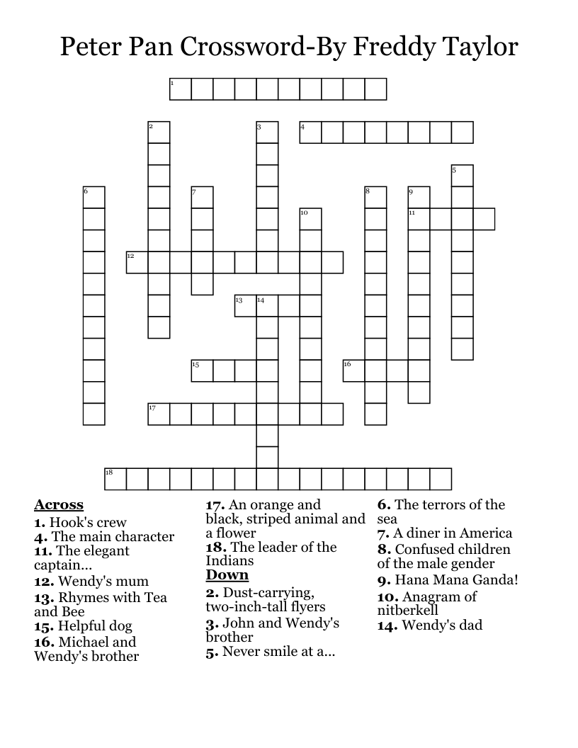 Peter Pan Crossword By Freddy Taylor WordMint