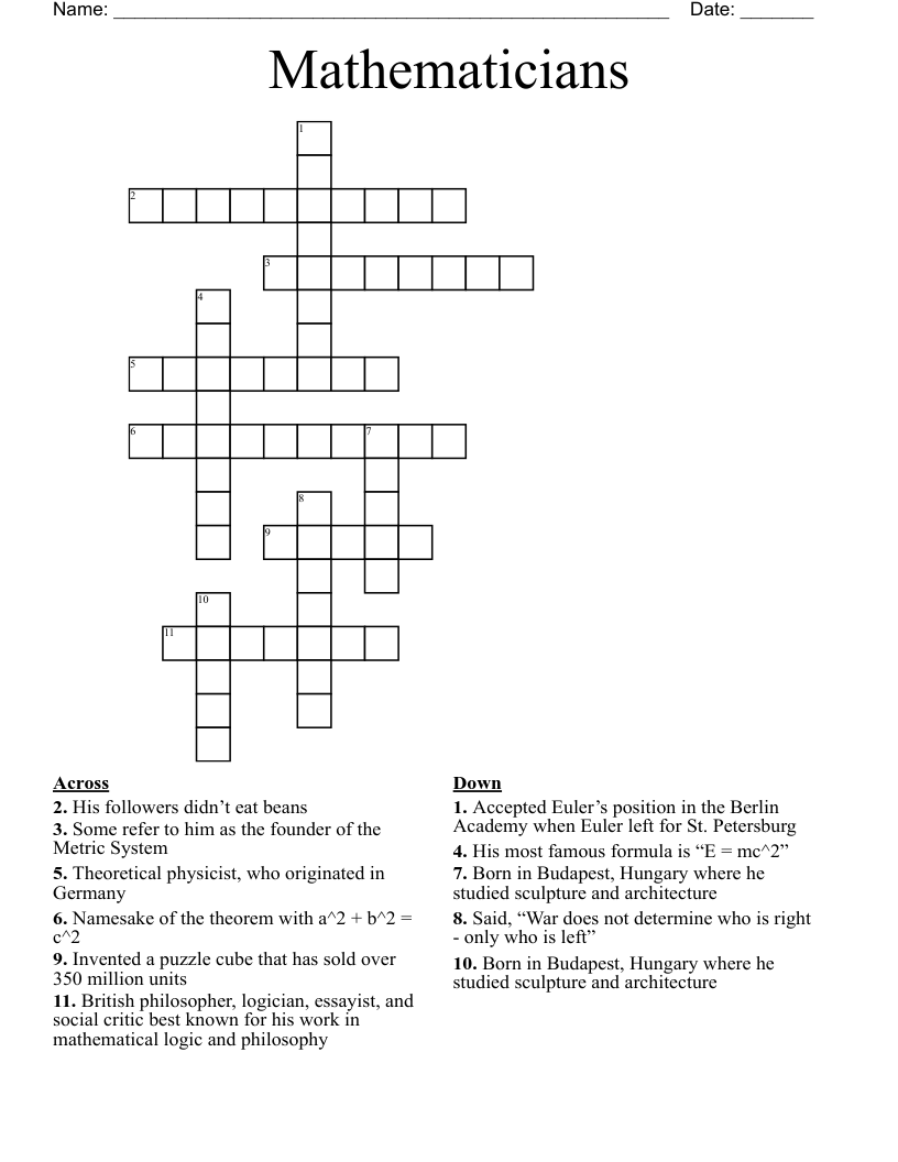 Mathematicians Crossword WordMint