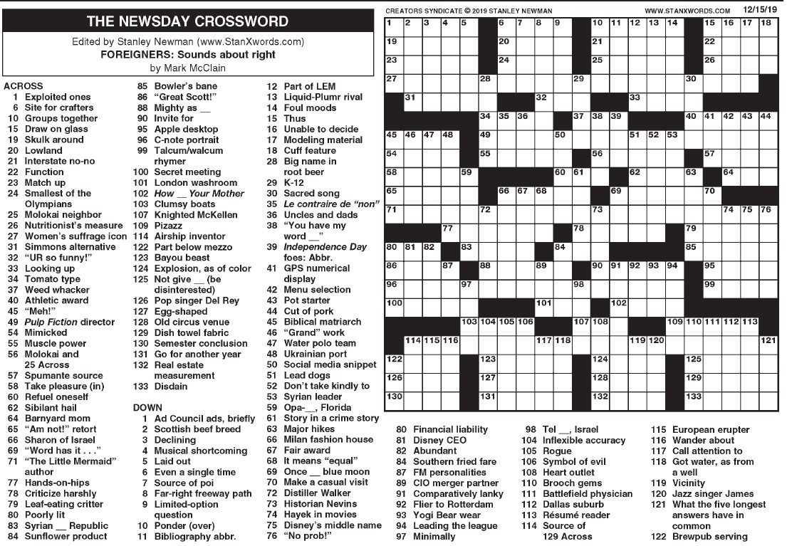 The Newsday Crossword The Mountain Eagle
