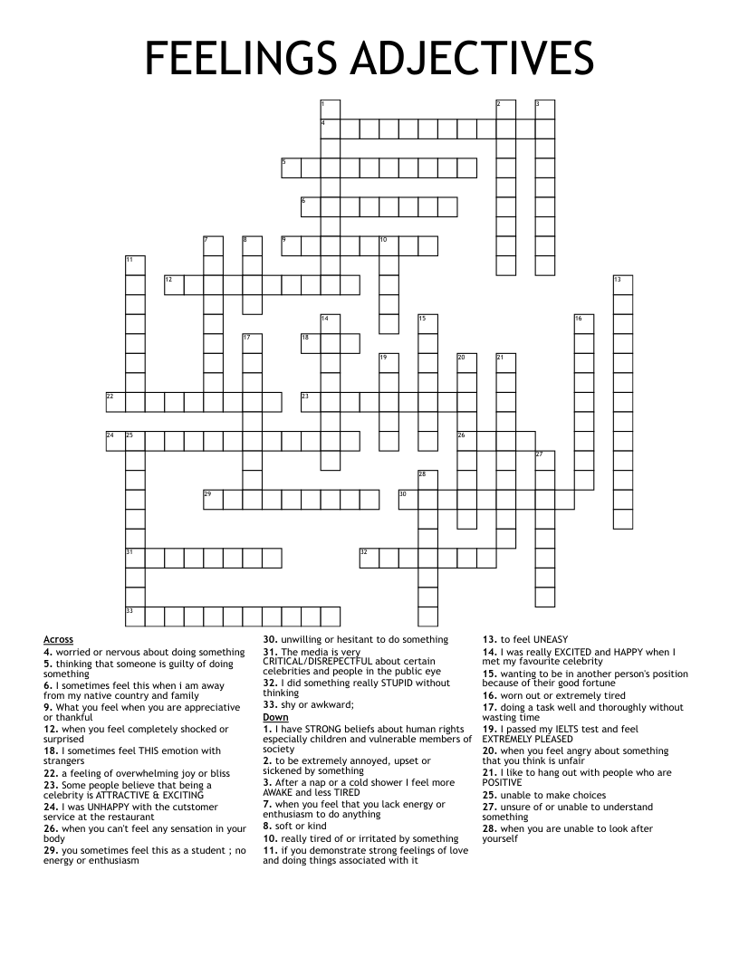 FEELINGS ADJECTIVES Crossword WordMint