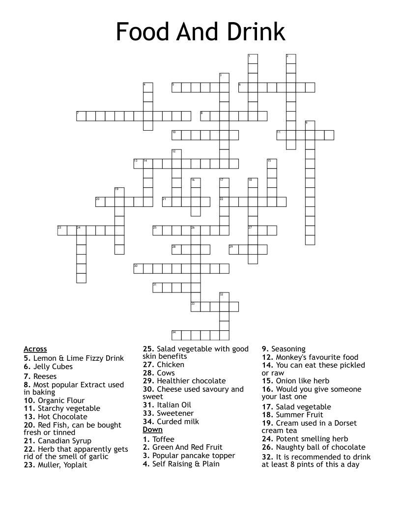 Food And Drink Crossword WordMint