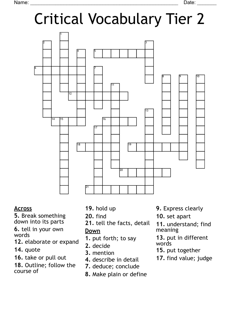Tier 2 Words Crossword WordMint