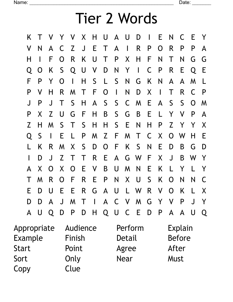Tier 2 Words Word Search WordMint