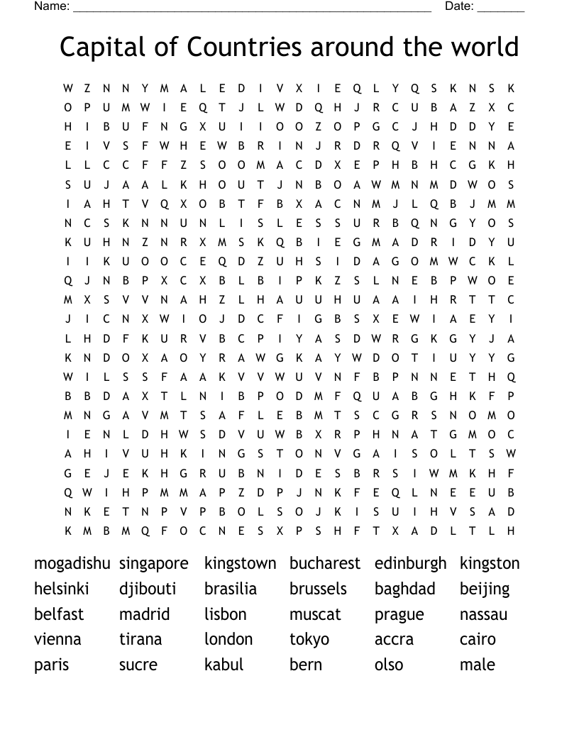 Capital Of Countries Around The World Word Search WordMint