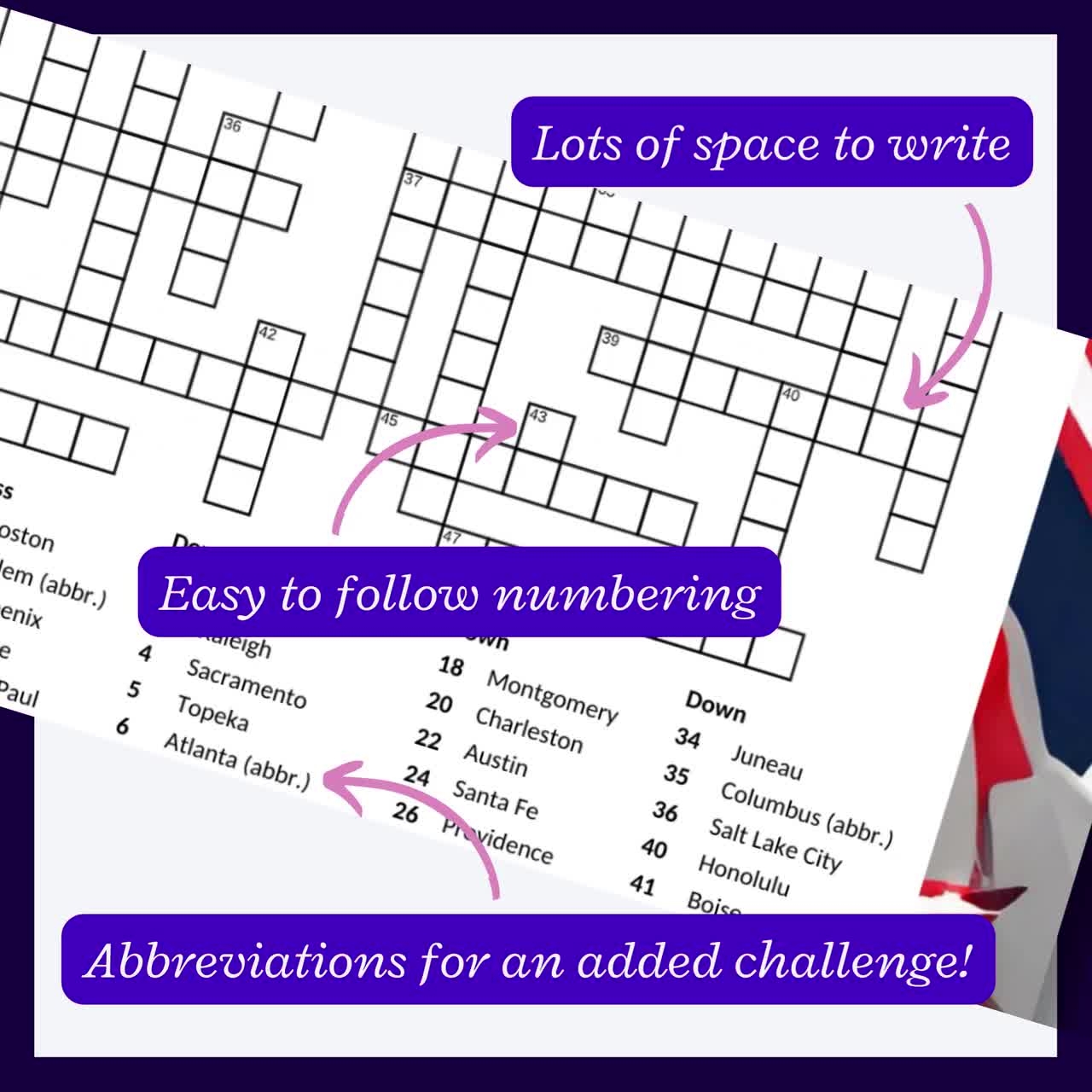 U S State Capital Crossword Puzzle Including All 50 States Great July 4 Or Family Reunion Game cross Word Puzzle For Teens adults Etsy